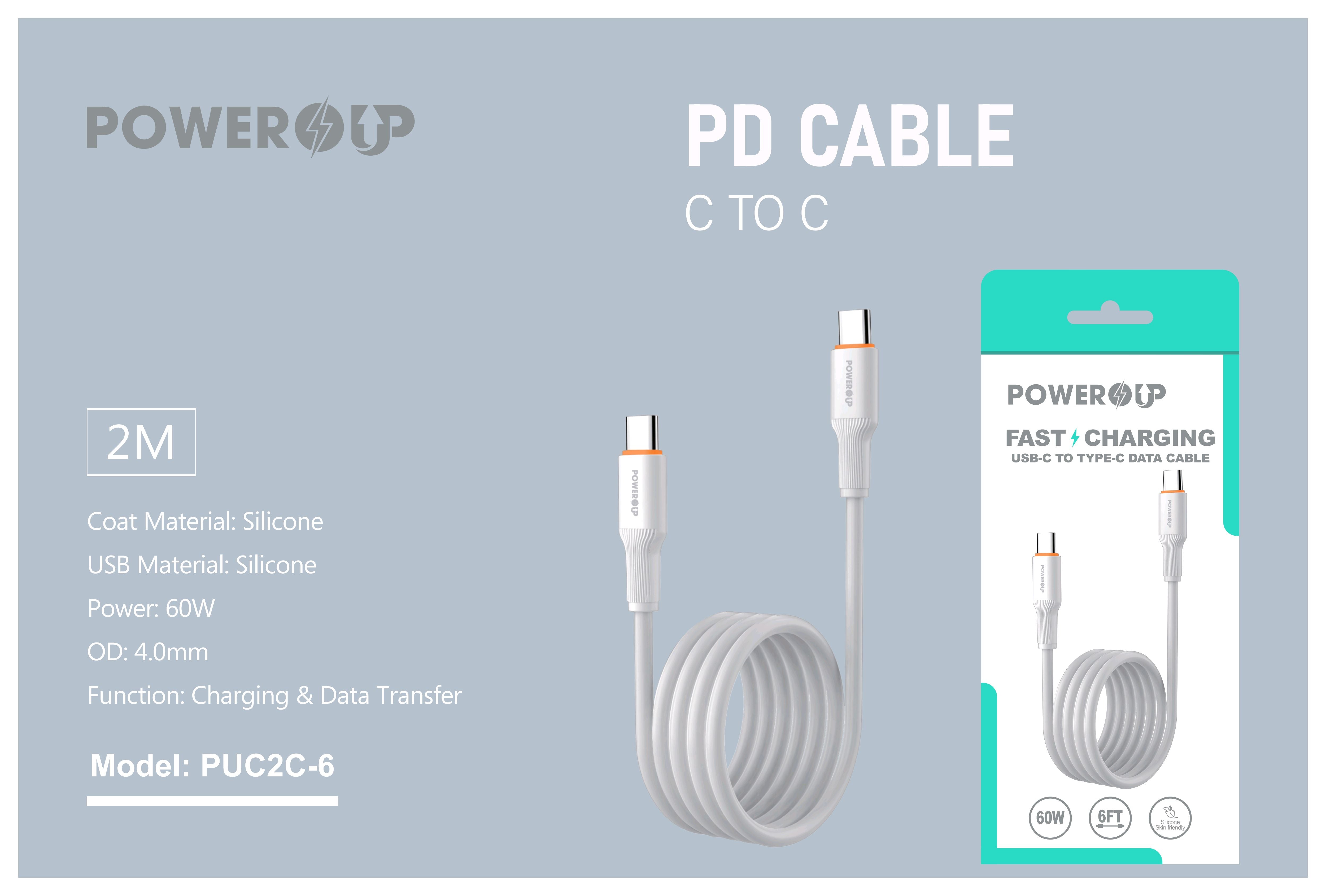 PowerUp 60W Fast Charging Data Cable USB-C to Type-C With 6ft Length
