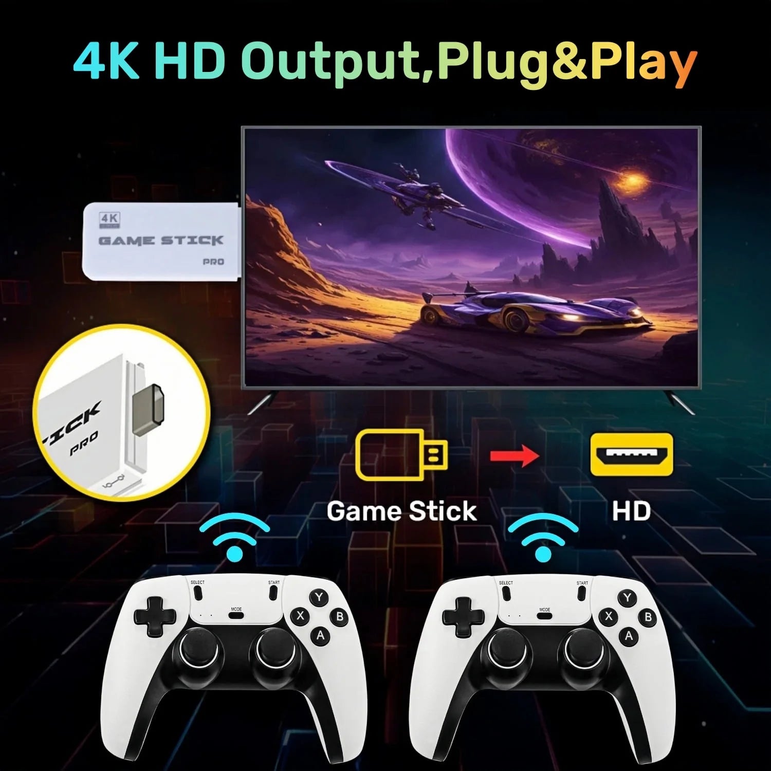 Immersive Display: Connects to various screens via HDMI, offering 1080P HD image quality for an engaging gaming experience on large displays.