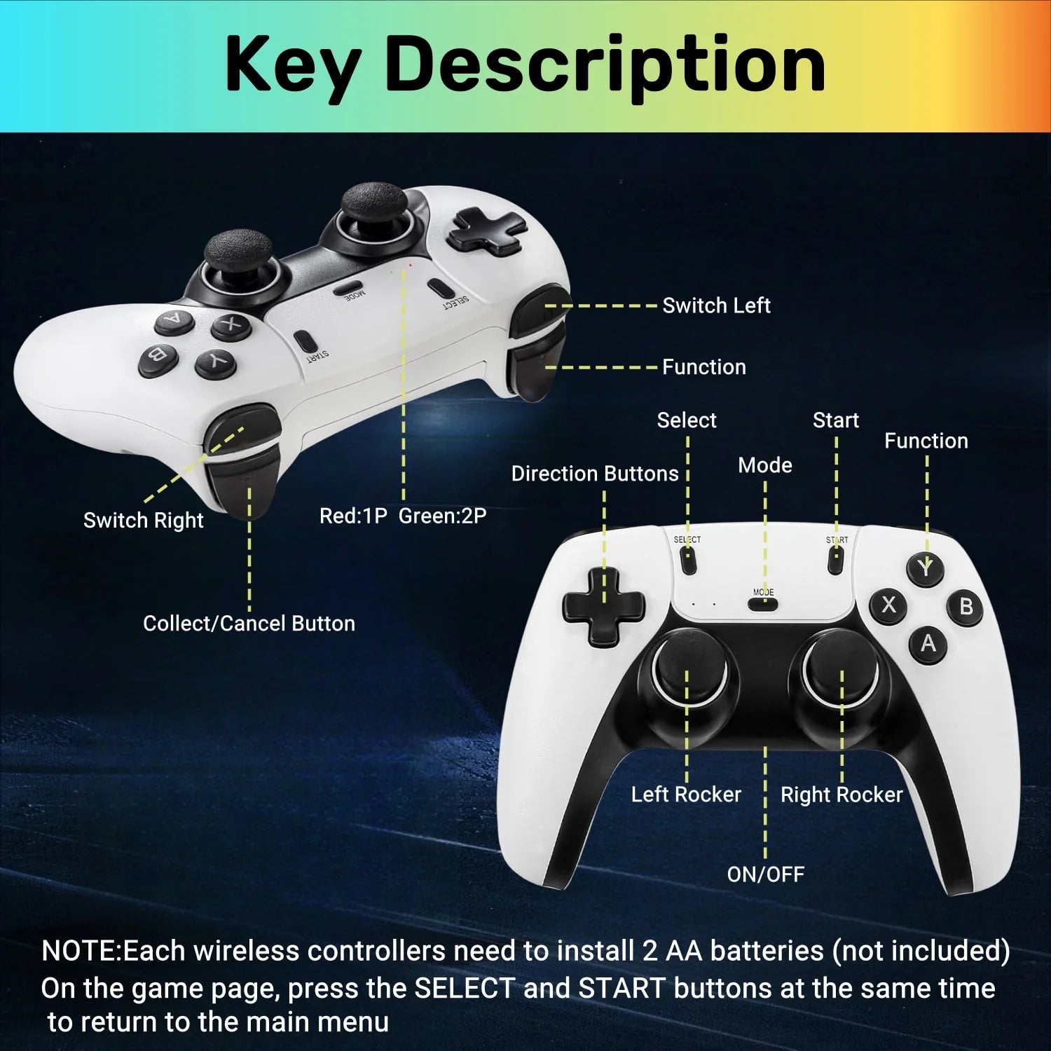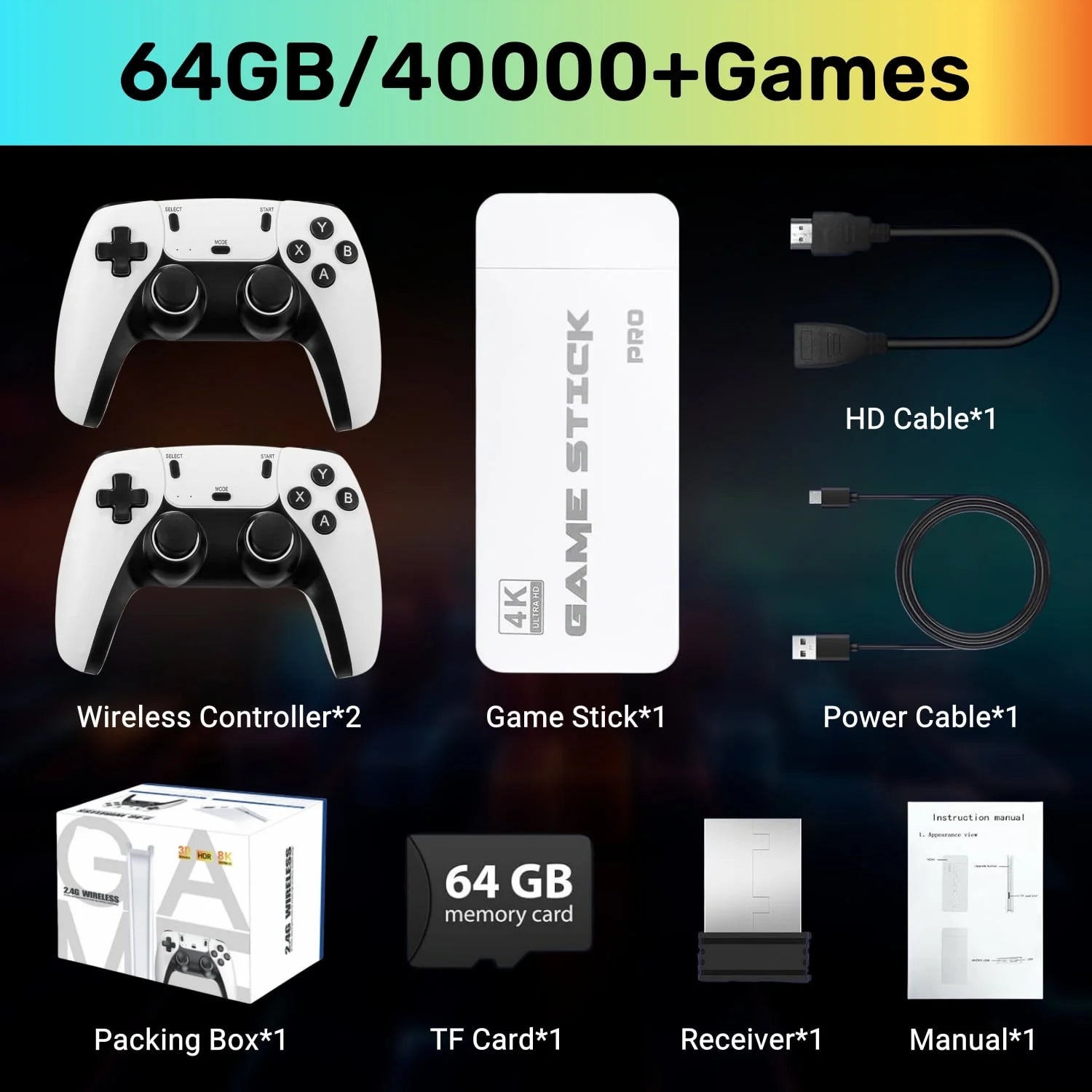Wireless Control: Includes two 2.4G wireless controllers, supporting up to four players simultaneously for shared gaming sessions.