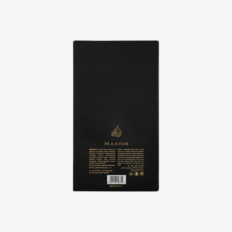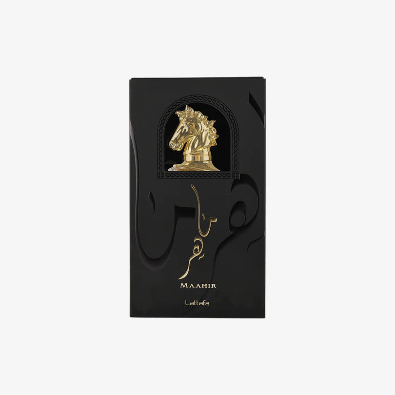 Maahir by Lattafa is an Amber Floral fragrance for women and men launched in 2020, its scent profile includes sweet fruity top notes of red berries, peach, and bergamot, a heart of jasmine, peony, and red lily, and a base of warm sandalwood, vanilla flower, and musk. The fragrance is known for being long-lasting, with a noticeable projection, making it suitable for cooler weather and special occasions.