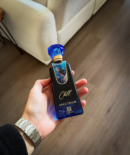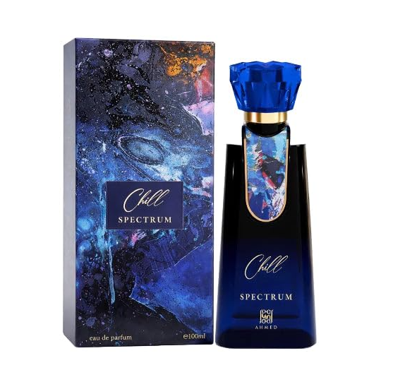Spectrum Chill by Ahmed Al Maghribi is a radiant and refreshing extrait de parfum that masterfully blends citrus‑aquatic, herbal, solar, and woody elements into a modern and long‑lasting fragrance experience. It starts with a sparkling citrus burst, transitions into a creamy solar floral heart with fresh herbal accents, and settles into a refined woody‑musky base. The fragrance creates a cool, breezy vibe perfect for warm climates and relaxed occasions, while its extract concentration delivers strong longevity and confident wear.