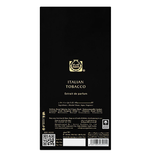 Indulge in rich sophistication with Surrati Italian Tobacco Extrait de Parfum, a luxurious and bold fragrance crafted for both men and women who appreciate deep, aromatic scents. This high-concentration extrait offers a powerful yet refined scent journey — from the first captivating notes to a lasting, smooth dry-down.